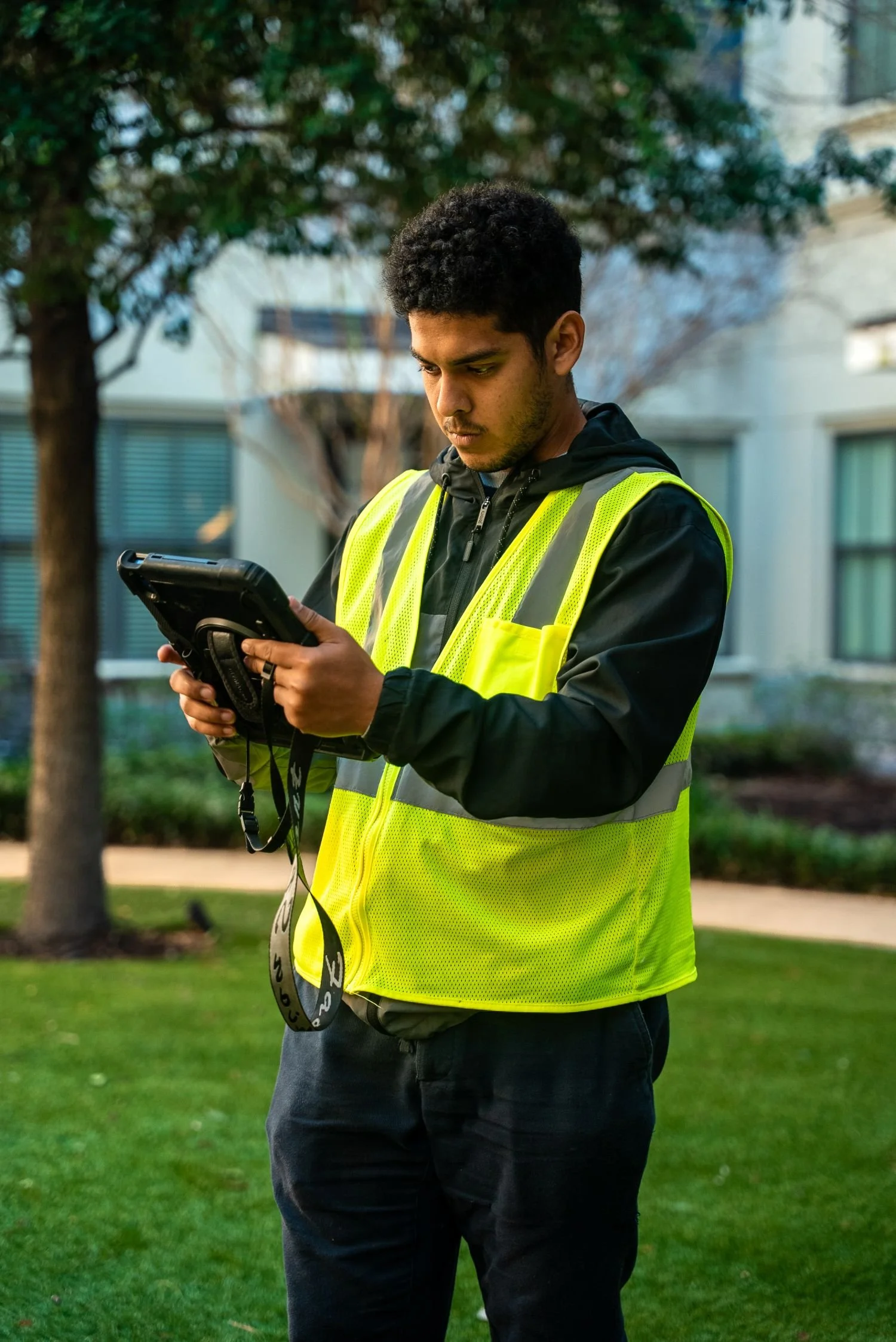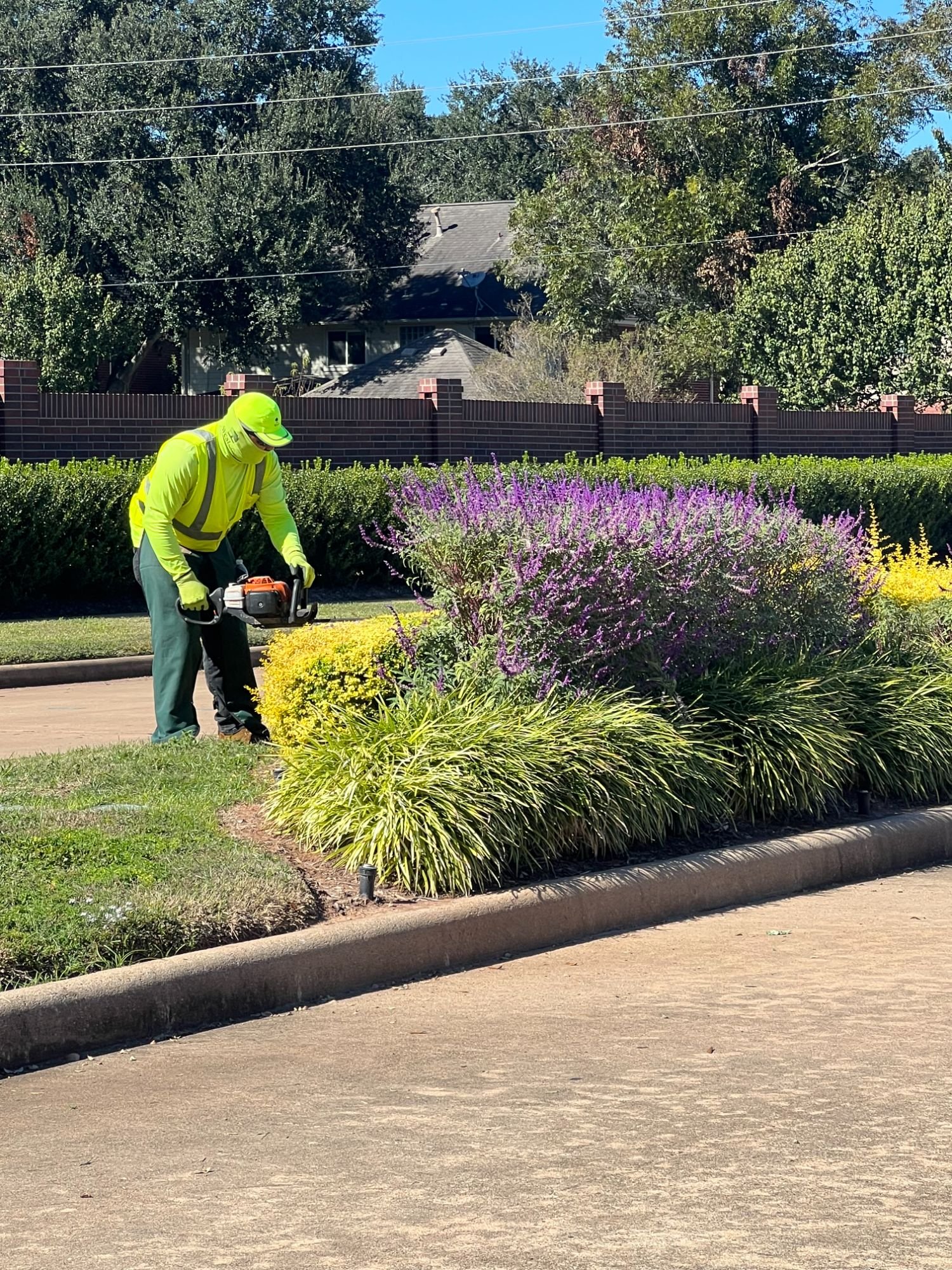 Staff operating company vehicles pass a driving evaluation with our safety manager. All employees are uniformed, background screened, and I-9 verified. For clients with specific compliance requirements — including corporate campuses serving oil and gas operations — our safety standards are built to meet those expectations.